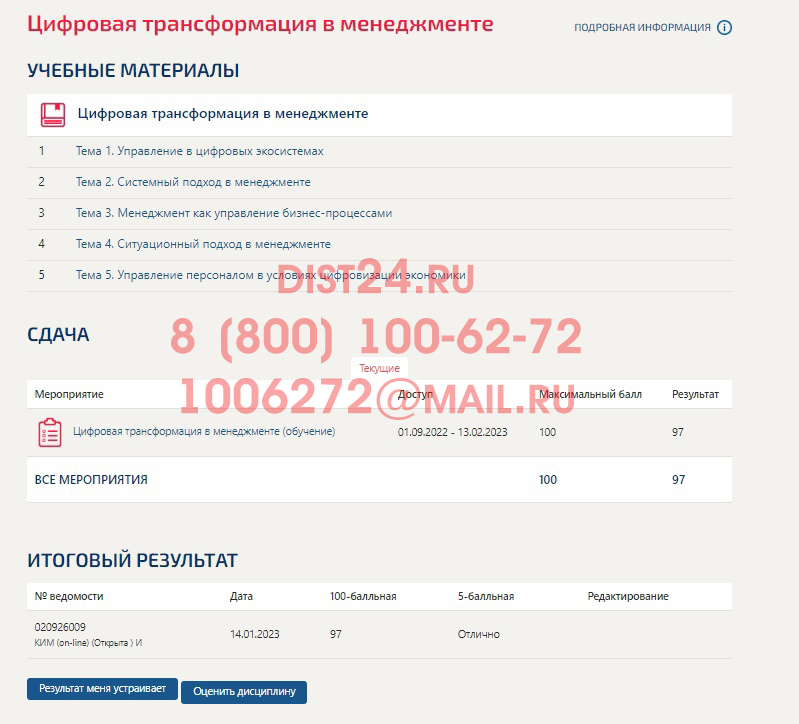 Решим вступительные, промежуточные, итоговые тесты и экзамены в личном кабинете. Поможем с отчетом по практике, курсовой, дипломной работой. Пока Вы занимайтесь своими делами, наши специалисты сдадут сессию за Вас.